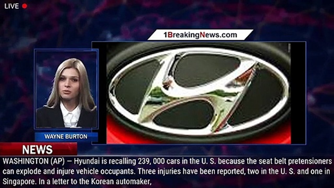 WASHINGTON AP Korean automaker Hyundai is recalling 239000 cars because the seat belt parts can explode and injure vehicle occupants. Hyundai Recalls 239000 Vehicles Over Exploding Seatbelt Concerns. 1 day agoByron Hurd.